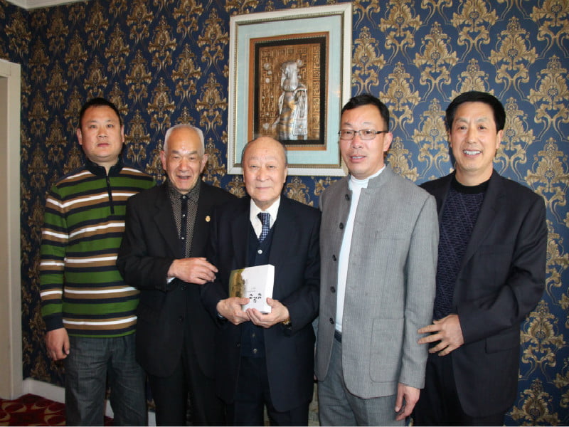 92歲高齡的世界孔子聯(lián)誼總會(huì)會(huì)長孔德墉(左三)與出席曲阜祭孔大會(huì)的信陽籍代表合影留念