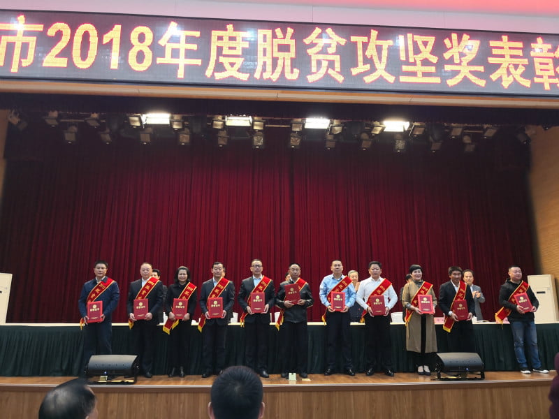 孔德穩(wěn)(中)榮獲信陽市2018年度脫貧攻堅(jiān)“奉獻(xiàn)獎(jiǎng)”